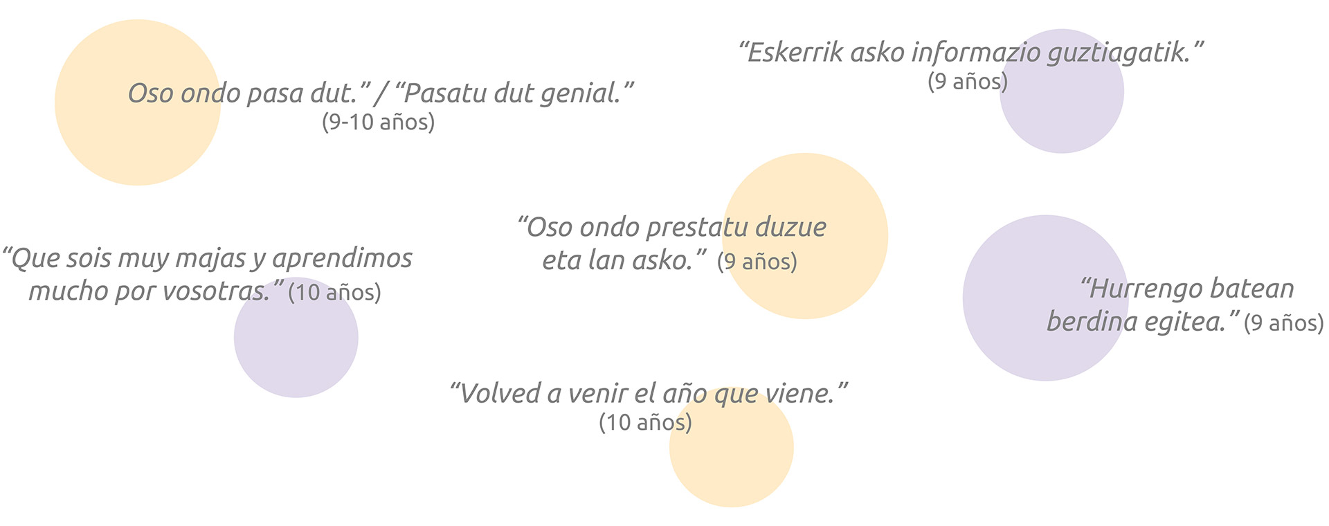 Adierazpen horiek erakusten dute tailerrak ulertu eta baloratu ez ezik modu positiboan bizi izan zirela, ikasten jarraitzeko interesa eta prestasuna sortuz. Oro har, emaitzak agerian uzten du praxi positiboa dagoela, eta horrek aldaketa eragin duela haurrengan.